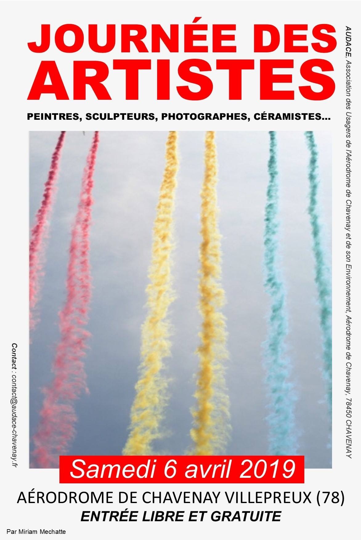 LFPXQuatre aéroclubs, dont le CAMI, mettront leur hangar à la disposition de plus de 80 artistes (peintres, graveurs, sculpteurs, photographes…) de la région afin qu'ils puissent présenter au public leurs créations, avec une animation musicale et dans une ambiance sympathique. Des auteurs seront aussi présents pour dédicacer leurs oeuvres; des pilotes assureront une permanence pour répondre …